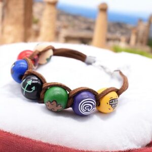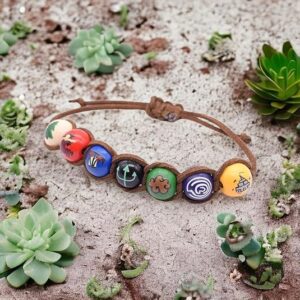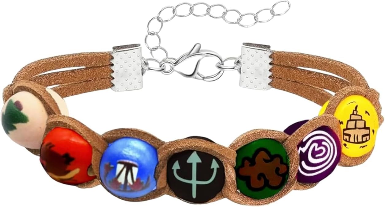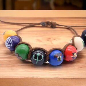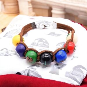 - PERFECTLY FIT & THE BEST QUALITY– The bracelet consists of a quality brown faux leather cord and seven colorful wooden beads. You can use it everyday or as a part of a cosplay costume. Choice is up to you!