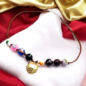 ✅ PERFECTLY FIT & BRILLIANT GIFT IDEA – The necklace consists of a quality brown faux leather cord which has a lobster clasp closure. There are eight colorful wooden beads and a ring charm in the middle. You can use it everyday or as a part of a cosplay costume. Choice is up to you!