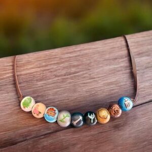 ✅ PERFECTLY FIT & BRILLIANT GIFT IDEA – The necklace consists of a quality brown faux leather cord which has a lobster clasp closure. There are nine shimmery metallic colorful wooden beads. You can use it everyday or as a part of a cosplay costume. Choice is up to you!