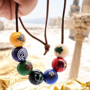 ✅ FANMADE CREATION – This necklace was created by a cosplay fan and represents Annabeth's colorful wooden bead amulet with eight beads, which are accompanied with Annabeth father's college ring as a charm.