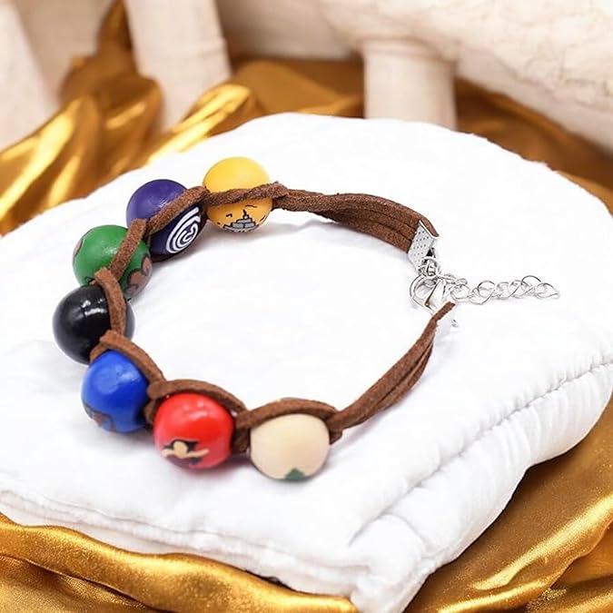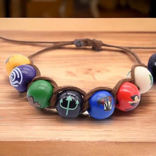 - PERFECTLY FIT & THE BEST QUALITY– The bracelet consists of a quality brown faux leather cord and seven colorful wooden beads. You can use it everyday or as a part of a cosplay costume. Choice is up to you!
