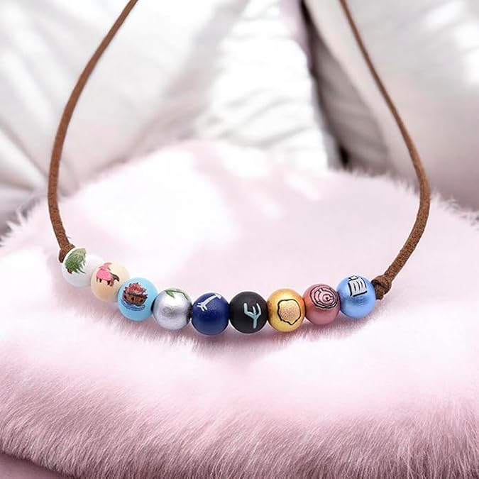 ✅ PERFECTLY FIT & BRILLIANT GIFT IDEA – The necklace consists of a quality brown faux leather cord which has a lobster clasp closure. There are nine shimmery metallic colorful wooden beads. You can use it everyday or as a part of a cosplay costume. Choice is up to you!