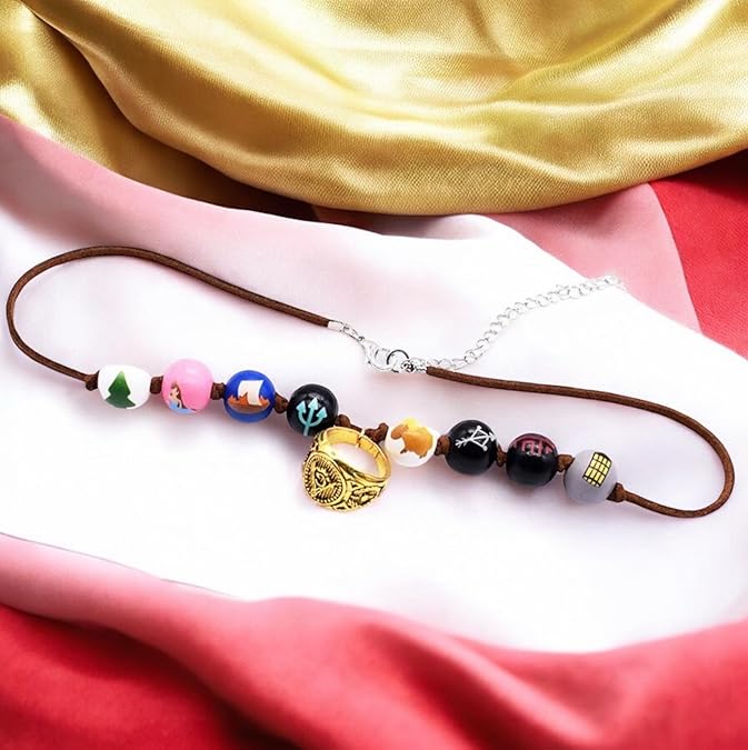 ✅ FANMADE CREATION – This necklace was created by a cosplay fan and represents Annabeth's colorful wooden bead amulet with eight beads, which are accompanied with Annabeth father's college ring as a charm.